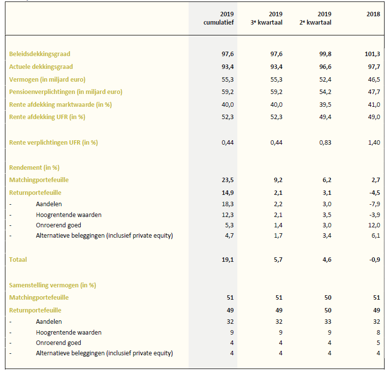 - Beleidsdekkingsgraad per 30 september 2019: 97,6%