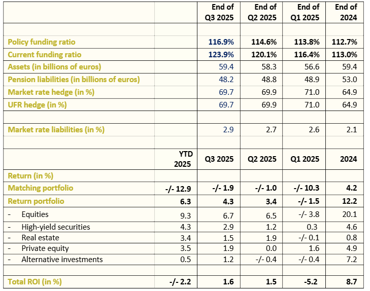 PME’s financial position improved again in the third quarter of 2025. The current funding ratio rose from 120.1% at the end of June to 123.9% at the end of September, mainly due to a slight increase in the interest rate. In the first nine months of this year, the funding ratio increased by almost 11 percentage points.
